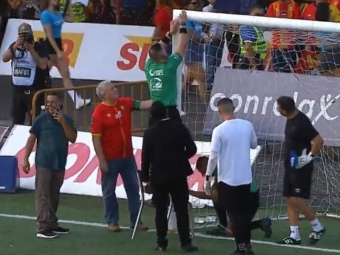 Los jueces llevaron una cinta métrica y, aunque no se difundió la altura que tenía el arco, se comprobó que la distancia era mayor a los 2,44 metros reglamentarios. A pesar de esto, el cuerpo técnico de la visita fue contundente al respecto. «No se debería jugar si el marco está en esas condiciones, pero bueno…«, comentó el asistente técnico del conjunto liguista.