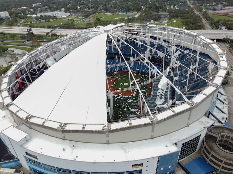 En San Petersburgo, el estadio de béisbol Tropicana Field, hogar de los Tampa Bay Rays, sufrió graves daños al colapsar su techo, que se utilizaba como refugio para el personal de emergencias.