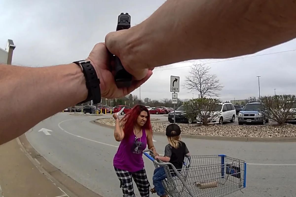 Tras recibir la llamada al 911, la policía llegó a las afueras de la tienda y detectó a la sospechosa con el niño sentado en un carro de compras. Tras la orden de que bajara el arma, que no fue obedecida, la mujer comenzó a atacar al niño con el cuchillo. En este marco, los agentes —uno de ellos el que llevaba la cámara en su pecho— dispararon varias veces hasta reducirla. La atacante, finalmente, murió en el lugar.