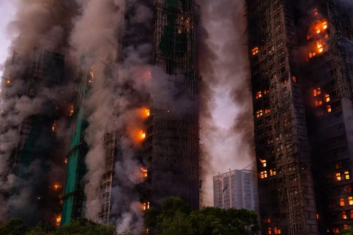 Las imágenes impactantes del incendio en la torre de Hong Kong