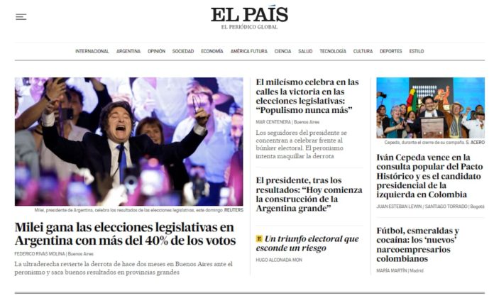 Los medios de América Latina también analizaron los resultados. El País de Uruguay abrió su edición digital con el suceso. Calificó la victoria de Milei como “rotunda”. El medio uruguayo profundizó en los dichos del presidente argentino tras conocerse los datos y evaluó sus próximos pasos.