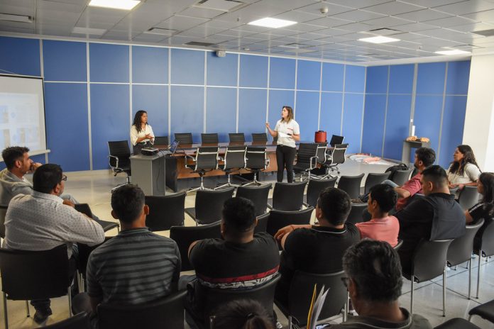 Las disertaciones estuvieron a cargo de Alejandra Senigaglia y Mariana Campus, integrantes del Departamento de Higiene y Seguridad de la Dirección de Policía de Trabajo de la Subsecretaría —ambas representantes provinciales en la mesa Pro.Na.Pre—, junto a Rosario González, profesional de la Superintendencia de Riesgos del Trabajo.